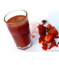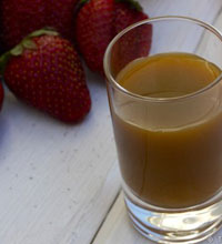 Wash the 250g (1 punnet) of strawberries and remove the greens (leaves). Process the fruit in an Optimum 400 juicer. Pour the juice over ice cubes into a serving glass and serve immediately.